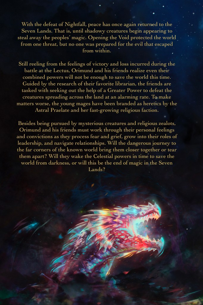 Still reeling from the feelings of victory and loss incurred during the battle at the Lectus, Orimund and his friends realize even their combined powers will not be enough to save the world this time. Guided by the research of their favorite librarian, the friends are tasked with seeking out the help of a Greater Power to defeat the creatures spreading across the land at an alarming rate. To make matters worse, the young mages have been branded as heretics by the Astral Praelate and her fast-growing religious faction.